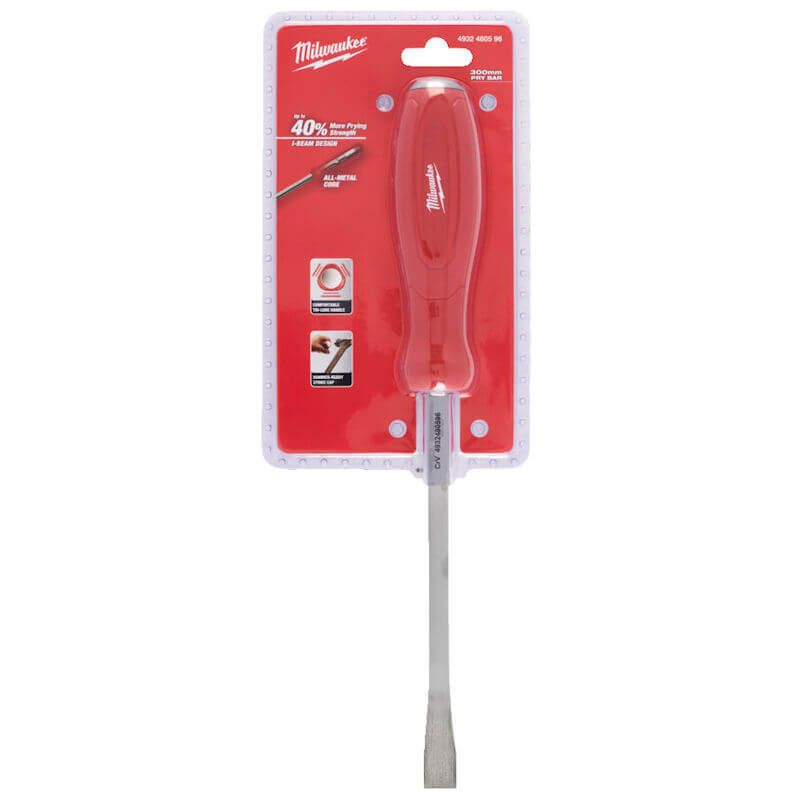 The Milwaukee 300mm pry bar features an I-Beam design for up to 40% more prying strength. This 30cm pry bar has an all-metal core and hammer-ready strike cap to increase leverage and durability. The Milwaukee 4932480596 is the best 12 inch pry bar with Tri-Lobe handle and can be struck with the Milwaukee club hammer for greater leverage.
