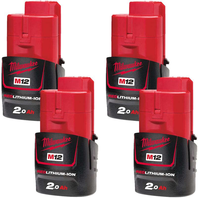MILWAUKEE 4X M12B2 M12 2.0AH RED LITHIUM-ION BATTERIES