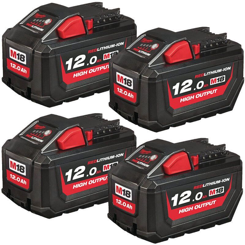 MILWAUKEE 4X M18HB12 M18 12.0AH HIGH OUTPUT RED LITHIUM-ION BATTERIES
