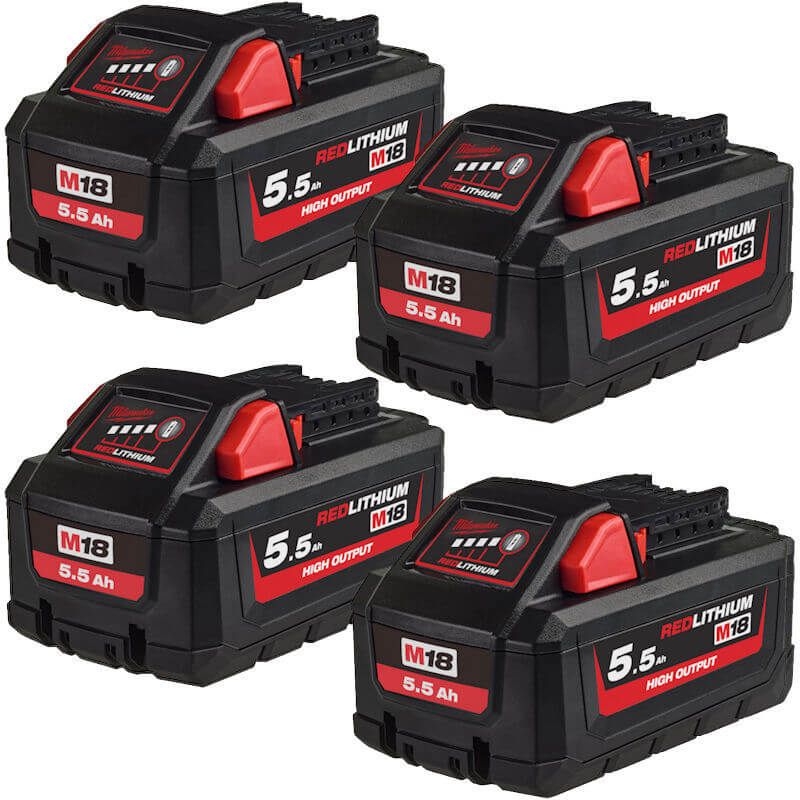 MILWAUKEE 4X M18HB5.5 M18 5.5AH HIGH OUTPUT RED LITHIUM-ION BATTERIES