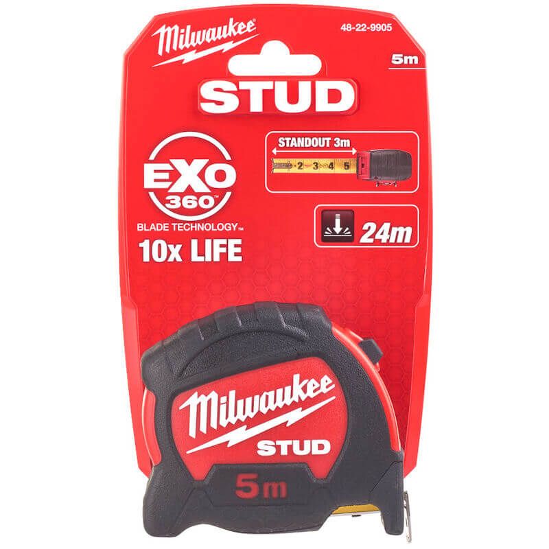 5m length.Metric only measurements.EXO 360™ blade technology delivers long lasting, rip and wear resistance.Up to 3m / 10' standout.Patented finger stop: protects fingers from blade retraction.Fully reinforced frame.ABS housing with impact resistant overmold for more comfort and jobsite durability.Wire form belt clip: reduces pocket tearing.Class II accuracy.